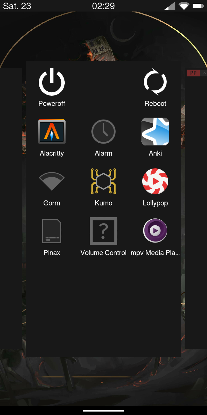 Tzompantli is a minimal application drawer for phones running Wayland.